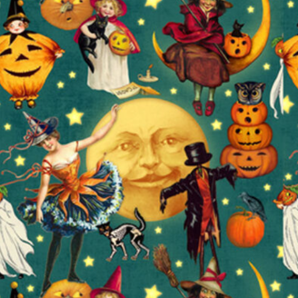 Pumpkins & Bats Allover Blue